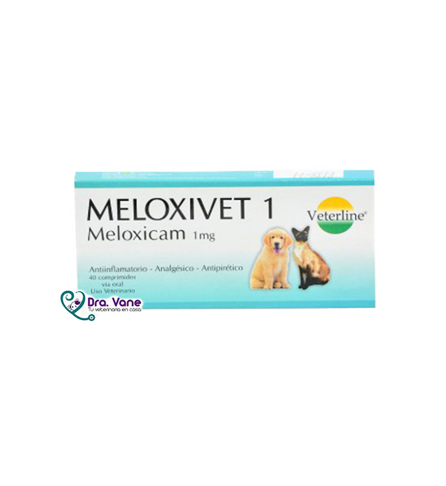 Meloxivet 1mg es un antiinflamatorio no esteroideo, analgésico y antipirético de uso veterinario, disponible en Perú. Meloxicam de uso veterinario a buen precio. Útil para el tratamiento de los procesos inflamatorios en traumatismos. También posee actividad analgésica y antiinflamatoria efectiva en el tratamiento de la artritis, distensiones musculares y en enfermedades que cursen con dolor, inflamación o fiebre.