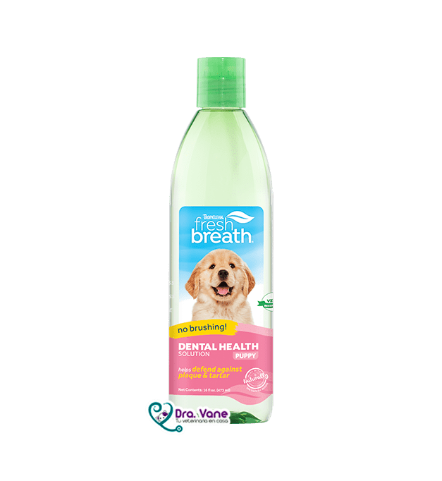 La salud oral de su mascota es más que solo tener una linda sonrisa, es unimportante componente de la salud de su mascota, de hecho, un 80% de losperros y 70% de los gatos de 3 años, ya han mostrado signos de enfermedadoral. Con Fresh Breath Oral Care Water Additive, su mascota tendráuna protección diaria contra la formación de tártaro dental, deforma simple al beber el agua de su pocillo.