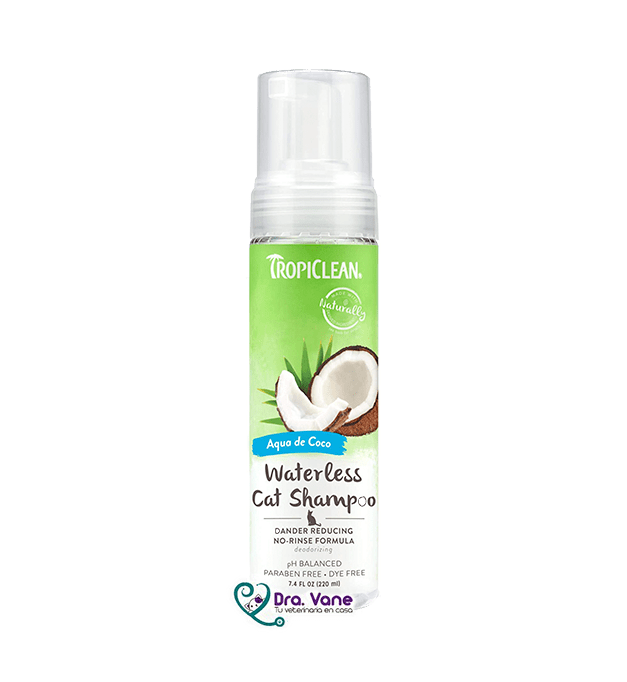 Contiene una (1) botella de 7.4 oz de champú reductor de caspa sin agua TropiClean para gatos
