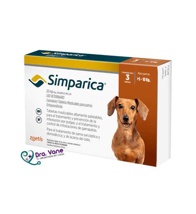 • Composición: Cada comprimido Simparica 20 mg contiene: Sustancia activa: Sarolaner 20 mg